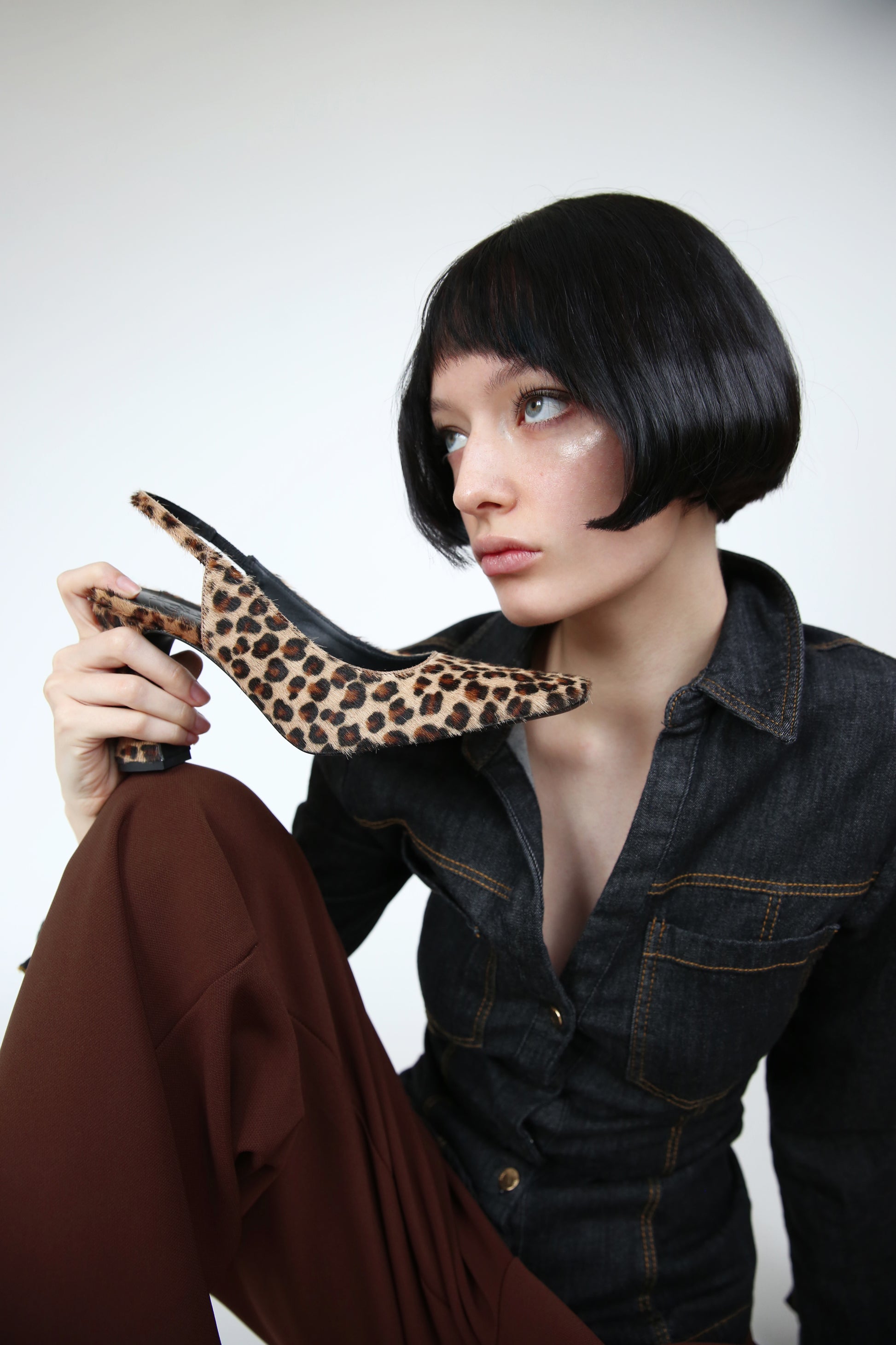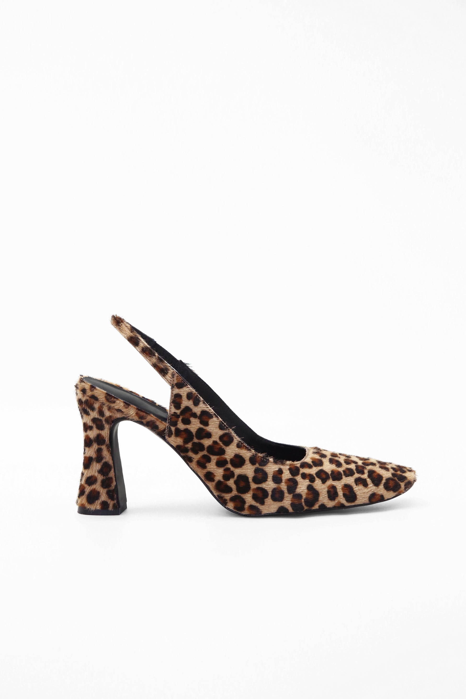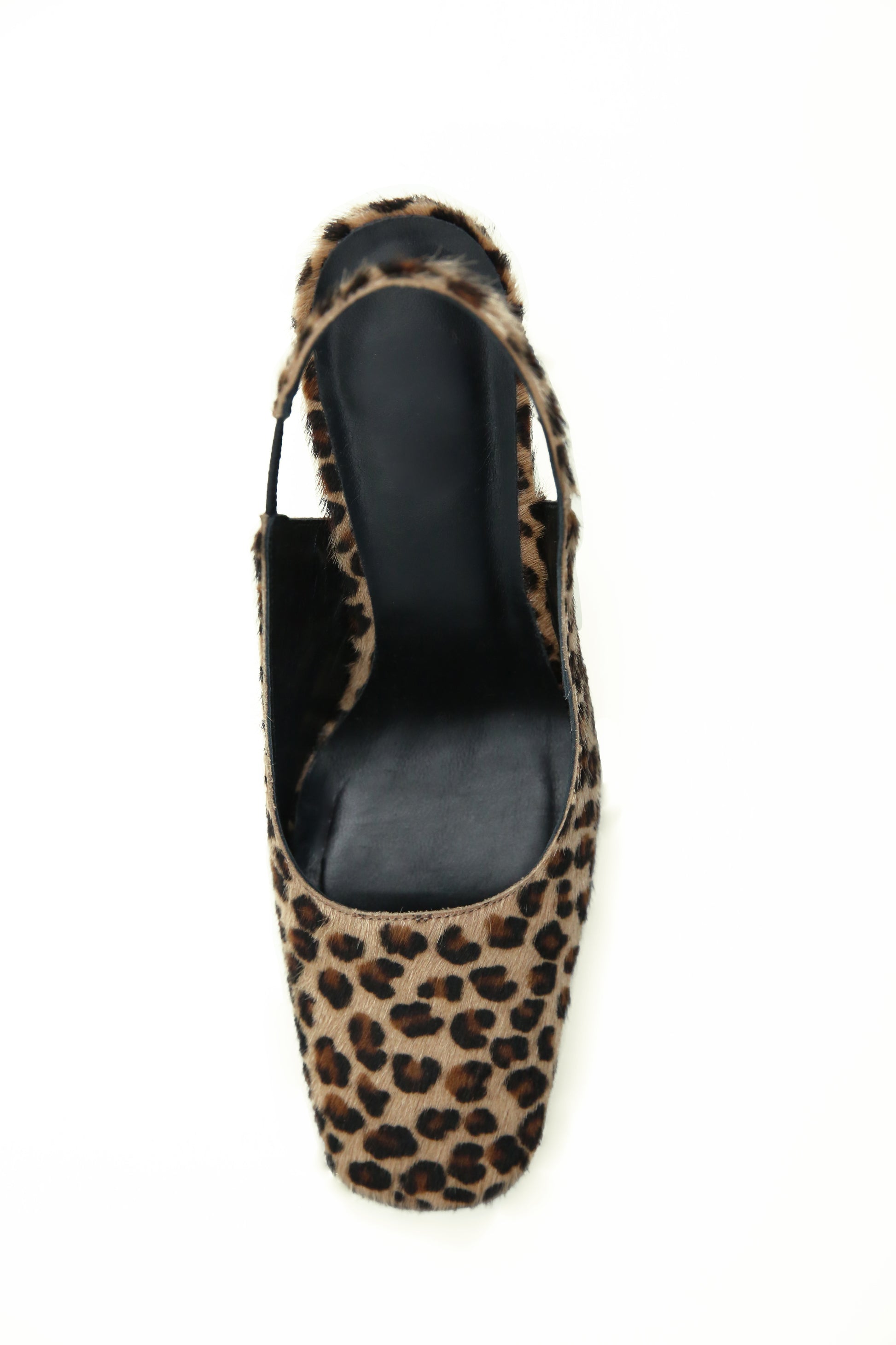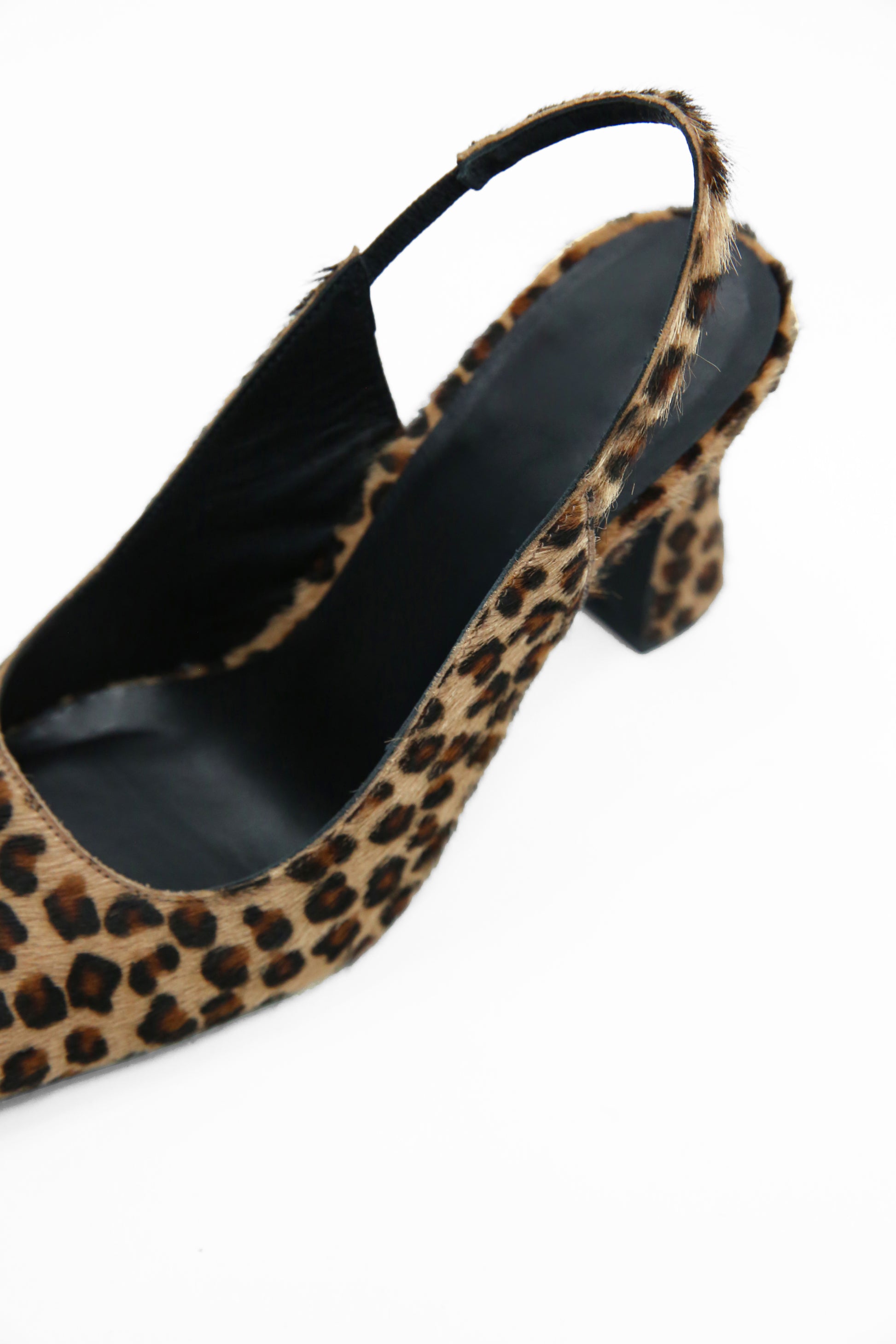 Die Wahl des kurzhaarigen Leopardenmaterials ist eine wichtige sensorische Komponente für das Modell Lempicka, ein ästhetisches Erbe der 1970er Jahre, das zusammen mit der ausgestellten Struktur des Absatzes eine rebellische und feminine Erzählung vermittelt.Die Nähte sind im Design selbst offensichtlich und tragen dazu bei, die technische Präzision der Handwerkskunst zu unterstreichen. Der Riemen im Slingback-Stil ist mit einem flexiblen Teil ausgestattet, um den Komfort zu gewährleisten.