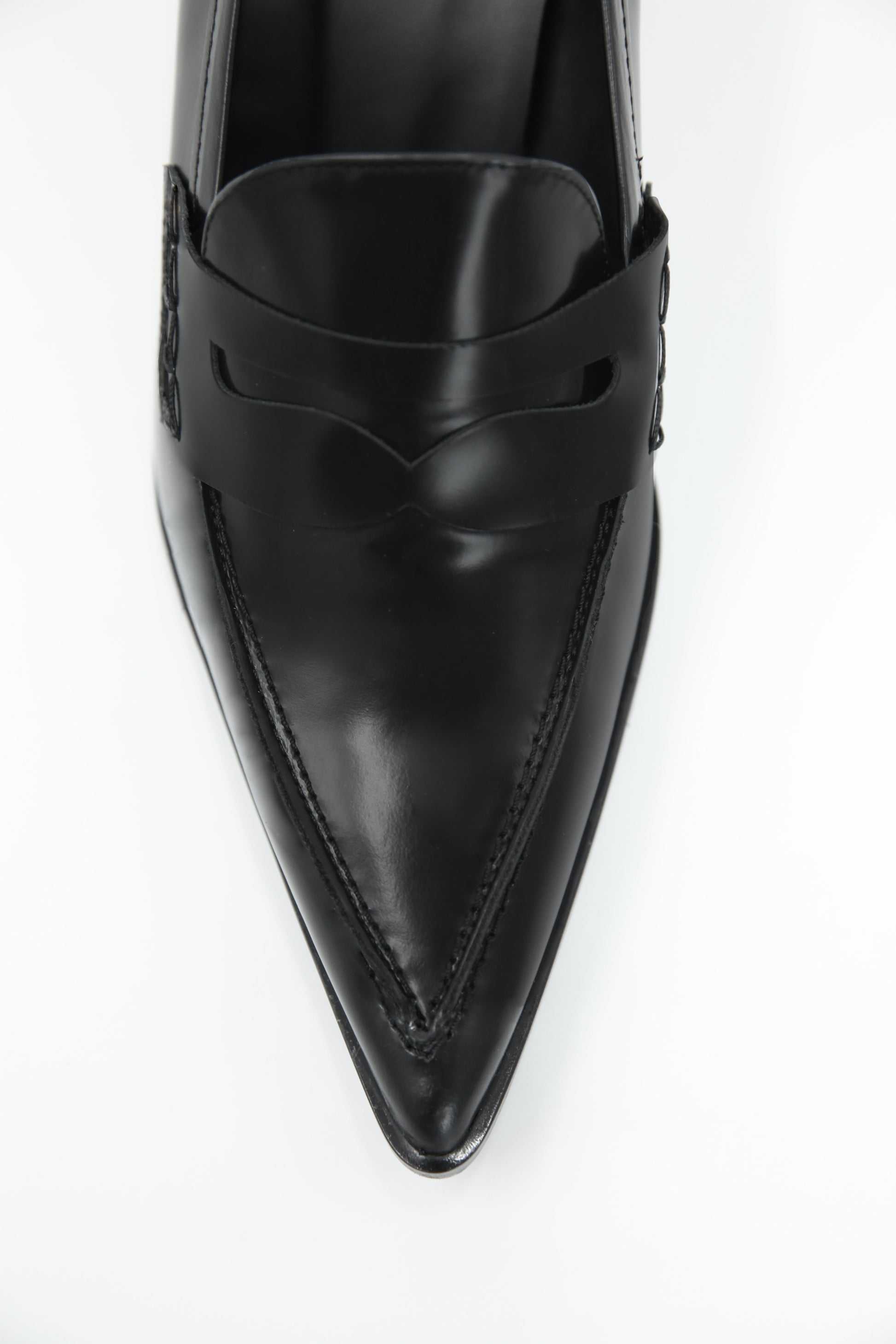 O acabamento em couro liso aumenta a versatilidade do modelo, enquanto a biqueira pontiaguda acrescenta uma subtil atitude transgressora. A estrutura do mocassim é inspirada na tradição da alfaiataria, com costuras visíveis que não só têm uma função decorativa, como também realçam a precisão da montagem artesanal.